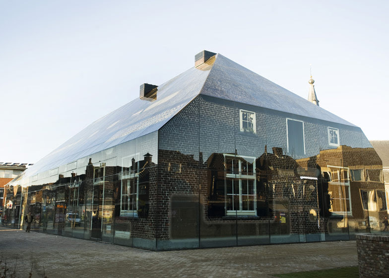 "This shop and office complex by Dutch architects MVRDV is disguised as an old farmhouse, but its walls and roof are actually made from glass... Using a fritting technique the architects were able to print the images straight onto the glass, creating the illusion of brick walls and a thatched roof." (via Dezeen)C: An original photograph of something beautiful.